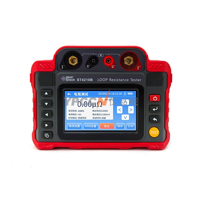 产品简介:回路电阻测试仪,又名微欧计、接触电阻测试仪,是我公司精心研制的一款专门测量各种高压开关接触电阻、高压断路器接触电阻、金属焊接构件连接电阻、金属导体回路电阻、精密微欧电阻的仪表。本仪表以高速微控制器为核心,结合了高精度A/D转换器、数字测量技术、抗工频干扰技术、以及先进的程控电流源技术,使内置大容量可充锂电池产生无纹波直流电流,最大能输出100A,可以每2.5A步进细调输出电流,多达87个电流档位,满足多电流档位测试;同时可以设置时间(10s、20s、30s、40s、50s、60s)连续输出大电流测试,并在快速测试模式下实现测试时间最快在1秒以内,确保在强干扰环境下依然能保持高精度、高稳定性和高智能化测试。仪表采用5寸彩色LCD显示,中英文操作界面,清晰直观;还配有标准电阻,正式测试前可以对仪表进行精度自检;仪表具有量程宽、数据存储量大、抗干扰能力强、操作简单、手持式、体积小、便于携带等优点;还可以选配打印机,用于数据打印。